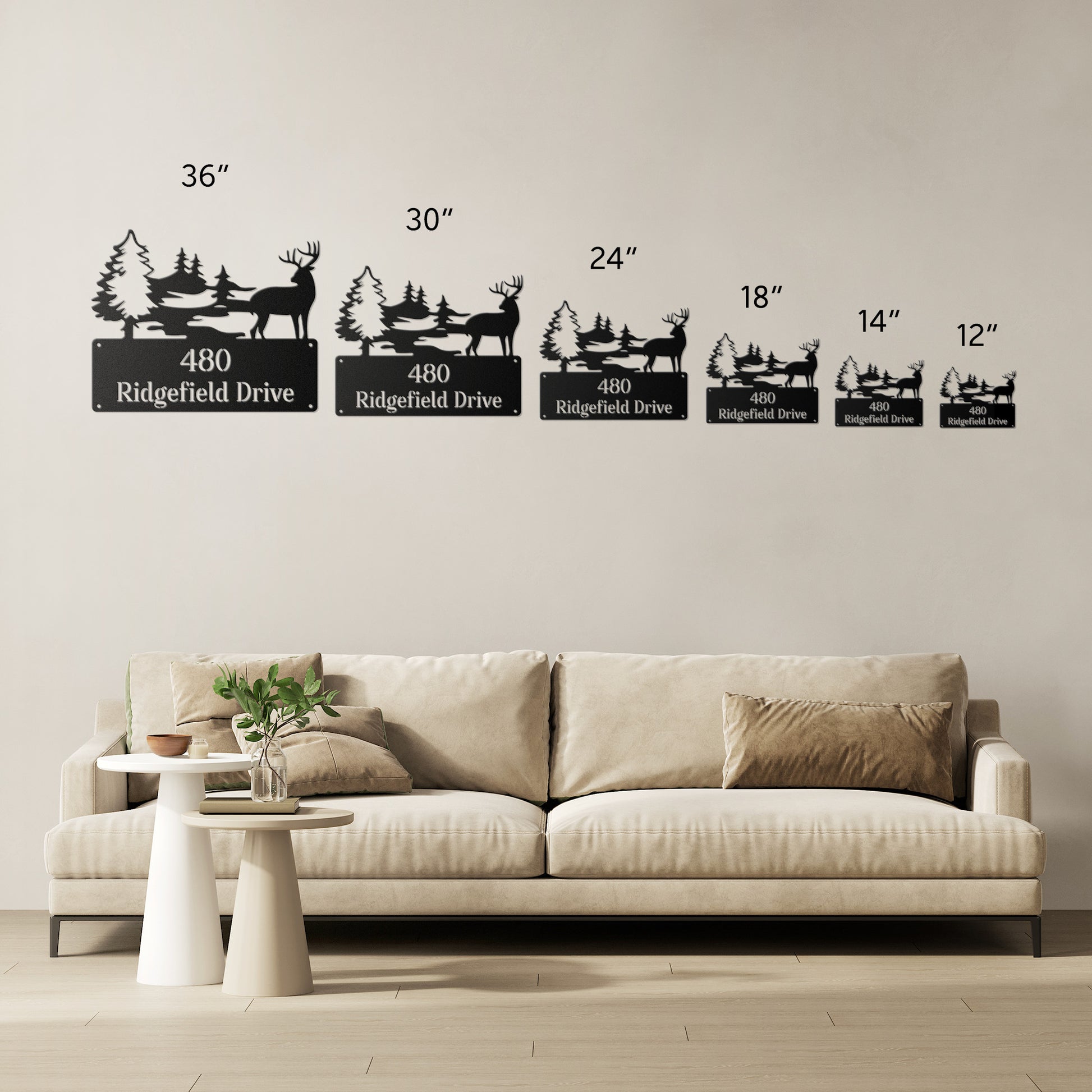 • 6 Sizes - 36", 30", 24", 18", 14", 12" *Selected size is based on the maximum height or width of the sign depending on physical orientation
